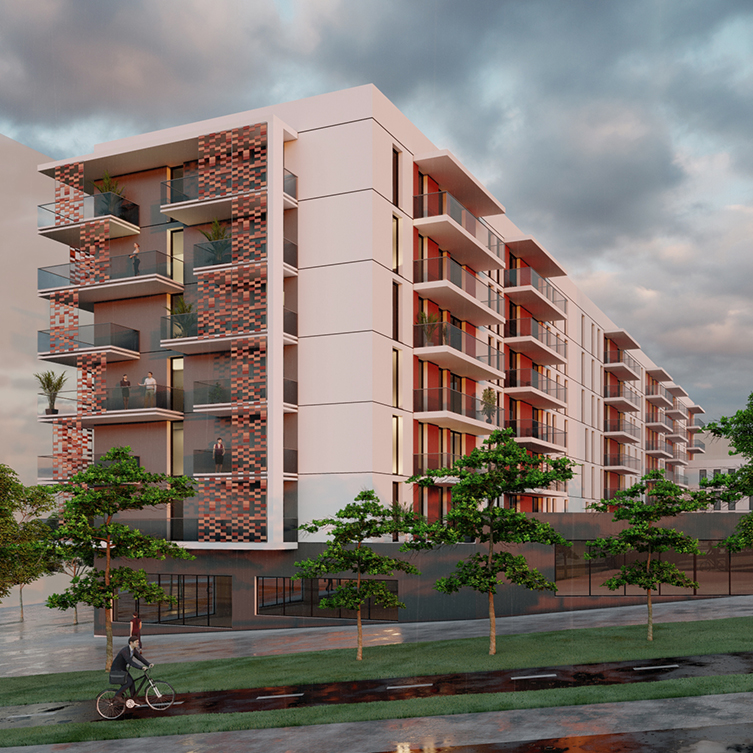 El proyecto explota al máximo los potenciales de eficiencia y sostenibilidad para facilitar la vida de los ocupantes y el ahorro de consumos. Por un lado, las viviendas se han concebido con opciones de adaptabilidad y flexibilidad para satisfacer distintas necesidades de las familias. Concentración de zonas húmedas en interiores, cocinas abiertas para optimizar espacios y ubicación de salas y dormitorios junto a fachada para mejorar ventilación y acceso a luz natural. La ejecución de obra se ha planteado en un sistema modular industrializado que permite un ahorro de costes, un ahorro de tiempo y una cadena de control de calidad mucho más exigente. Por otro lado, a nivel de sostenibilidad se ha explotado al máximo la limitación de demanda energética con el sistema de fachada a doble piel, todos los materiales de construcción son saludables, el sistema de carpintería tiene rotura de puente térmico y vidrio de control solar allí donde es necesario.