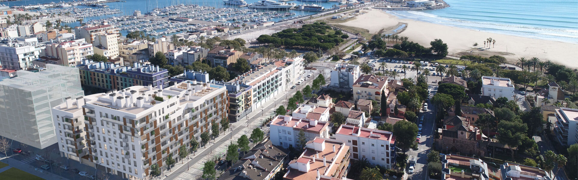 Las viviendas se abren al exterior a través de excepcionales balcones y terrazas, proporcionando gran luminosidad y unas vistas únicas a cada estancia. La elección de materiales modernos, cálidos y confortables ayudan a generar un ambiente singular en el que relajarse y disfrutar del día a día.